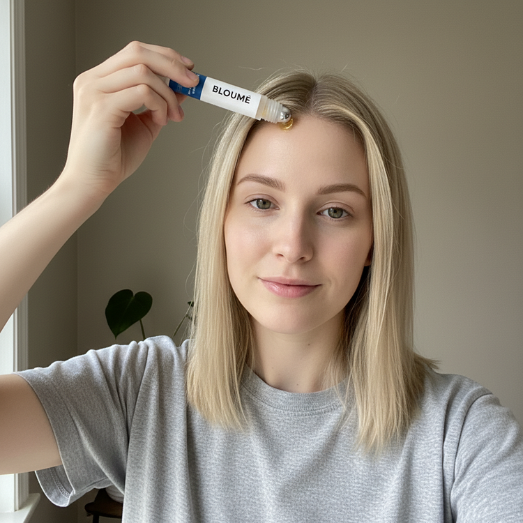 Ontdek BLOUMÈ's baanbrekende haarrol-on serum dat dormante stamcellen heractiveert en DHT blokkeert. Geniet van een rommelloze, druppelvrije applicatie en zie hoe je haar weer aan dikte en gezondheid wint.