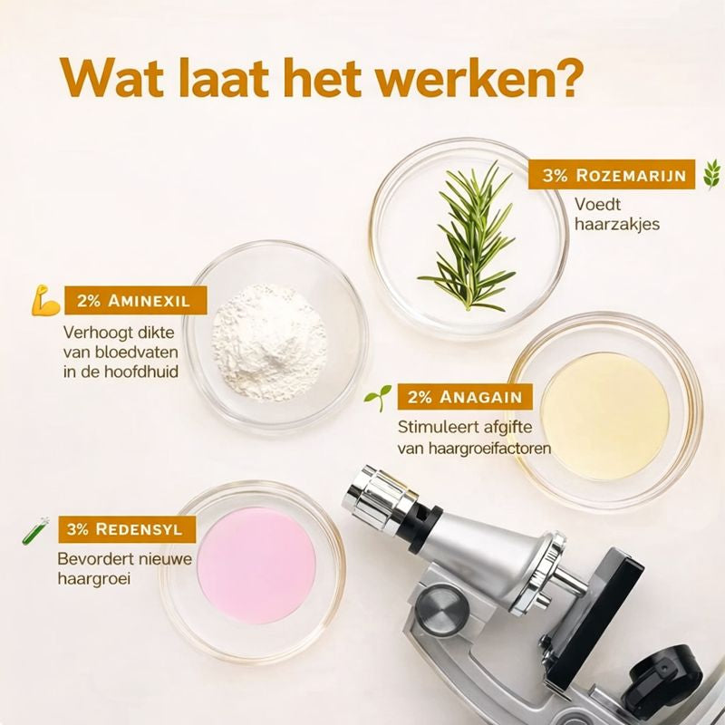 Onze gerichte roll-on formule werkt direct bij de wortel waar haargroei start — eenvoudig aanbrengen, elke dag sterker haar.